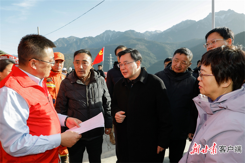 1月27日,省委书记、省人大常委会主任胡昌升赶赴迭部县地震灾区,实地调研指导抗震救灾工作,看望慰问避险安置群众。新甘肃·甘肃日报记者 孟捷