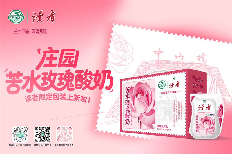 近日,兰州两家本土品牌迎来跨界合作,兰州乳企庄园牧场股份有限公司(以下简称“庄园股份”)携手《读者》杂志,联合推出限定联名产品“苦水玫瑰酸奶”。这场“纸间书香”与“舌尖奶香”的碰撞,不仅为消费者带来全新味觉体验,也串联起城市文化符号与时代记忆,在本地社交平台引发广泛热议,成为本土品牌创新发展的又一标杆。