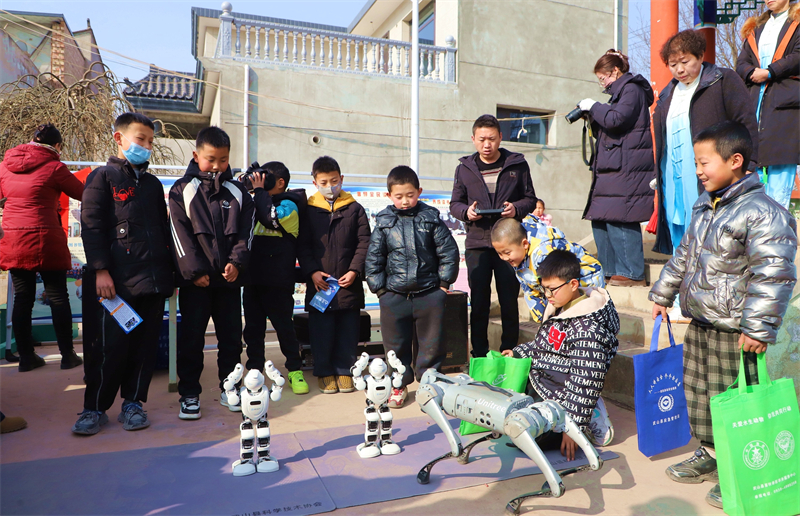 科技服务专区成为孩子们的“欢乐天地”和农户们的“取经课堂”。几台憨态可掬的互动机器人刚一亮相,就被孩子们团团围住。在志愿者耐心指引下,小朋友们排着整齐的队伍,轮流与机器人对话、击掌互动。当机器人跳起动感舞蹈、解答简单科普问题时,现场不时响起欢呼与惊叹。“机器人太神奇啦!它不仅会唱歌,还能教我认字、讲科学小知识,我要好好学习,以后也要研发更有趣、更有用的机器人!”四年级学生王梓轩踮着脚尖触摸机器人屏幕,眼里闪烁着兴奋与向往的光芒。另一边,农技专家立足武山蔬菜、特色种植等主导产业,现场发放科普手册、开展种植技术演示,针对春耕生产中的种子选择、病虫害防治等关键问题逐一答疑解惑,用通俗易懂的语言为农户传授提质增收的“科技良方”。