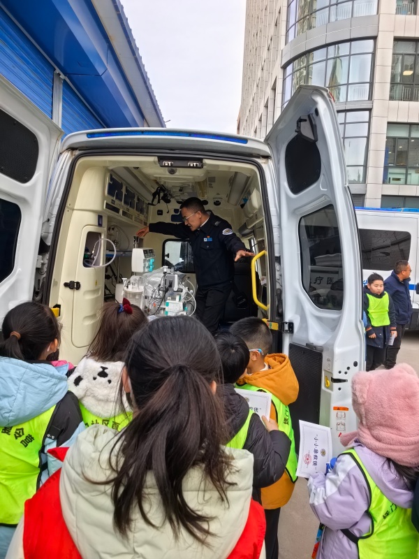 最让孩子们期待的是登上救护车。打开后门,医疗舱内呼吸机、除颤仪、监护仪等设备一应俱全,医护人员介绍:“除颤仪能在心脏骤停时电击复律,呼吸机可帮助呼吸困难患者维持呼吸。”孩子们小心翼翼触摸设备,眼神满是好奇与敬畏。“以前觉得救护车很神秘,今天才知道每件设备都是生命守护者,太神奇了!”一名女生由衷感慨。