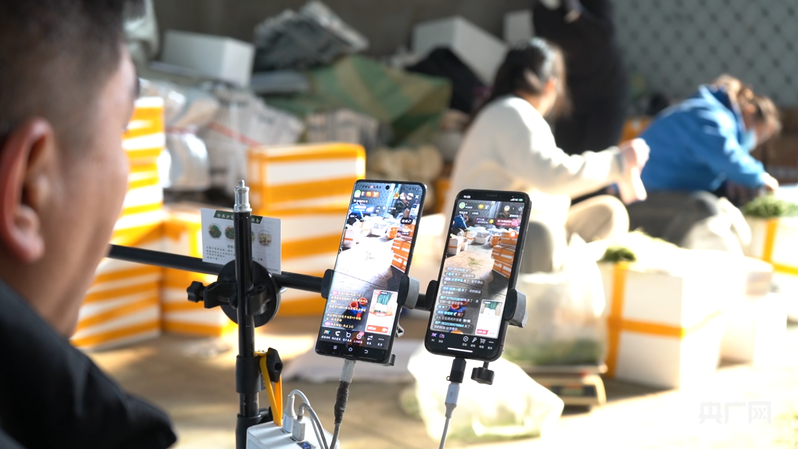 返乡青年叶东正在通过直播销售农特产品(央广网记者 魏晋雪 摄)