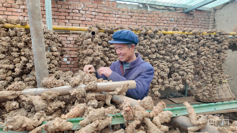 元古堆村村民曾玉成正在挑拣当归头(央广网记者 魏晋雪 摄)