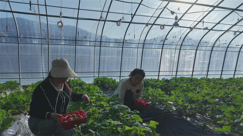 春节临近,庄浪县南坪镇水洛河流域的日光温室内暖意融融,生机盎然。一颗颗饱满红润的草莓宛如红宝石,在翠绿叶片间点缀,甜香四溢。这里是由南坪镇13个村级股份经济合作社联合组建的强村公司——甘肃庄浪恒聚源农业发展有限责任公司的草莓种植基地,迎来了草莓采摘的热潮。自开放采摘以来,这片“甜蜜基地”已成为周边城乡居民近郊游、亲子游的热门目的地,游客络绎不绝,人气持续上升。