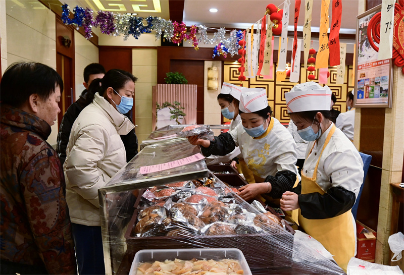 2月9日,市民在兰州悦宾楼选购年菜。随着春节临近,兰州各大餐企的年夜饭礼盒、半成品年菜礼盒开始热销。