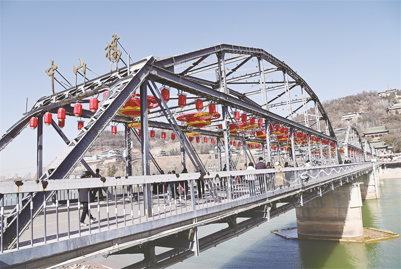 2月10日,正值小年,兰州中山桥“盛装”迎宾。富含国风元素的花灯与红灯笼高高挂起,将这座黄河铁桥装点得红红火火,年味十足。