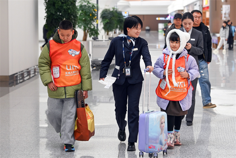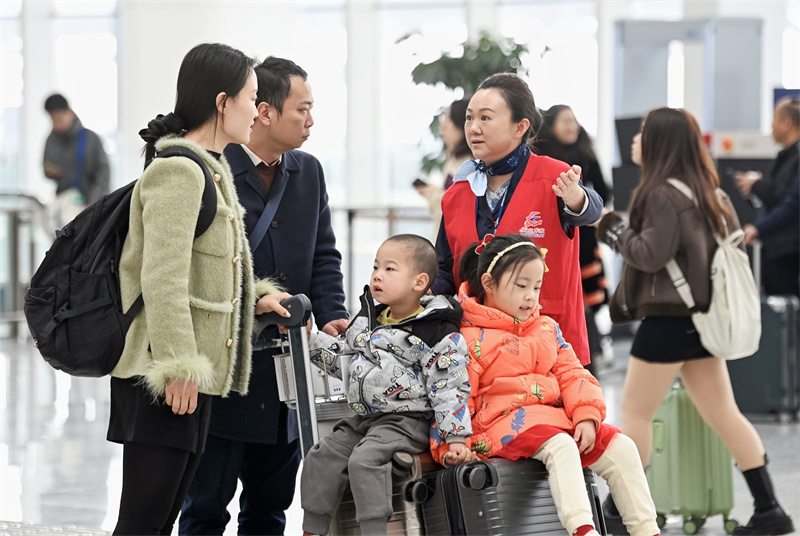 兰州中川国际机场T3航站楼内,工作人员为旅客提供暖心服务。