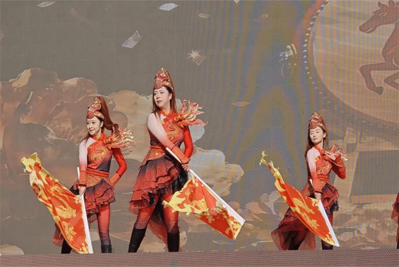 活动在激昂鼓乐中拉开帷幕,红绸翻飞、鼓声震天,点燃全场热情。甘肃省歌舞剧院演员赵哲宇献唱《甘肃老家》,情感真挚;“中国好人”居廷演唱《百花迎春》,带动观众齐声互动;舞蹈《马到成功》《妙音反弹》以活力舞姿与敦煌风韵赢得现场阵阵赞叹。