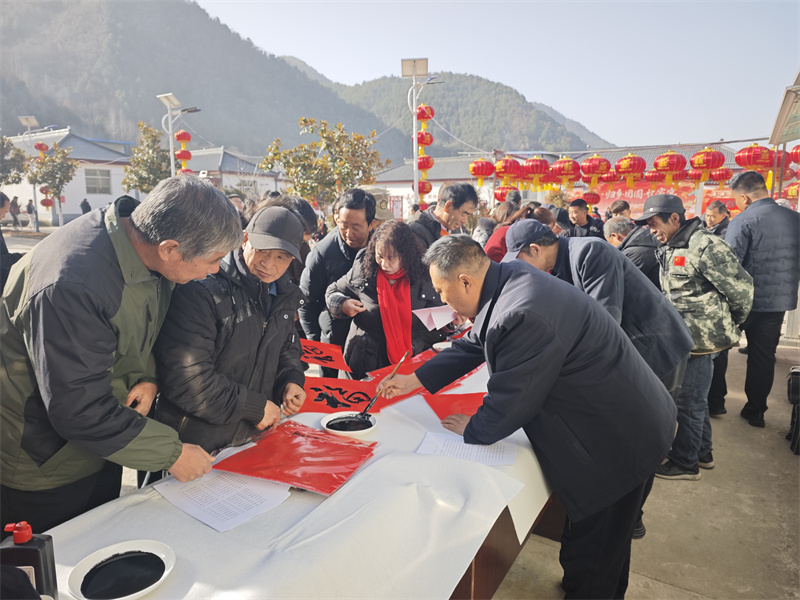 墨香迎新春,福韵满乡间。“写春联·送福”活动现场,徽县书法协会成员与本地书法爱好者挥毫泼墨,红纸铺展、笔尖流转,一副副寓意吉祥的春联、一个个饱满喜庆的“福”字跃然纸上。乡亲们有序等候、争相领取,捧着墨香未干的春联,脸上洋溢着幸福的笑容。一旁的趣味民俗运动现场更是热闹非凡,加油声、欢笑声、喝彩声此起彼伏,老少同台、邻里竞技,在轻松愉悦的氛围中拉近了彼此的距离,让传统民俗焕发出新的生机。