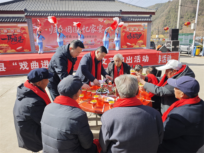 正午时分,团圆家宴正式开席,长桌排开、佳肴飘香,热气腾腾的饭菜端上桌,熟悉的家乡味温暖味蕾。返乡青年与留守老人围坐畅谈,分享在外打拼的经历、诉说家乡日新月异的变化,言语间满是心系故土、感恩乡邻、共建家园的真挚情怀。举杯相庆、互道祝福,乡音交织、温情流淌,一幅温馨和谐的团圆画卷在广场上徐徐展开。