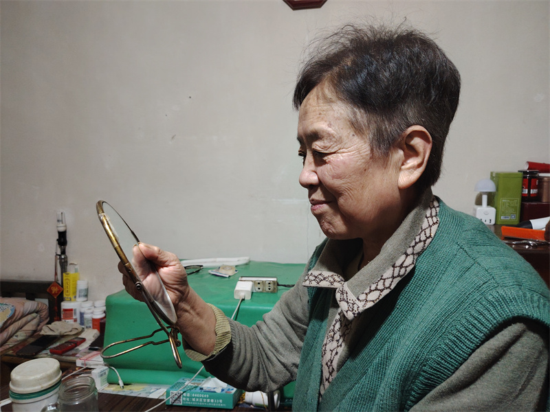 二十分钟的贴心服务后,王爷爷原本蓬松凌乱的白发变得清爽精神,志愿者又细心地用软毛刷扫去老人脸上、脖颈处的碎发,递上镜子让老人查看。王爷爷颤抖着抬手抚摸鬓角,看着镜中整洁的自己,嘴角不住上扬,连声夸赞:“好!剪得太好了!谢谢你们,我能清清爽爽过年了!”