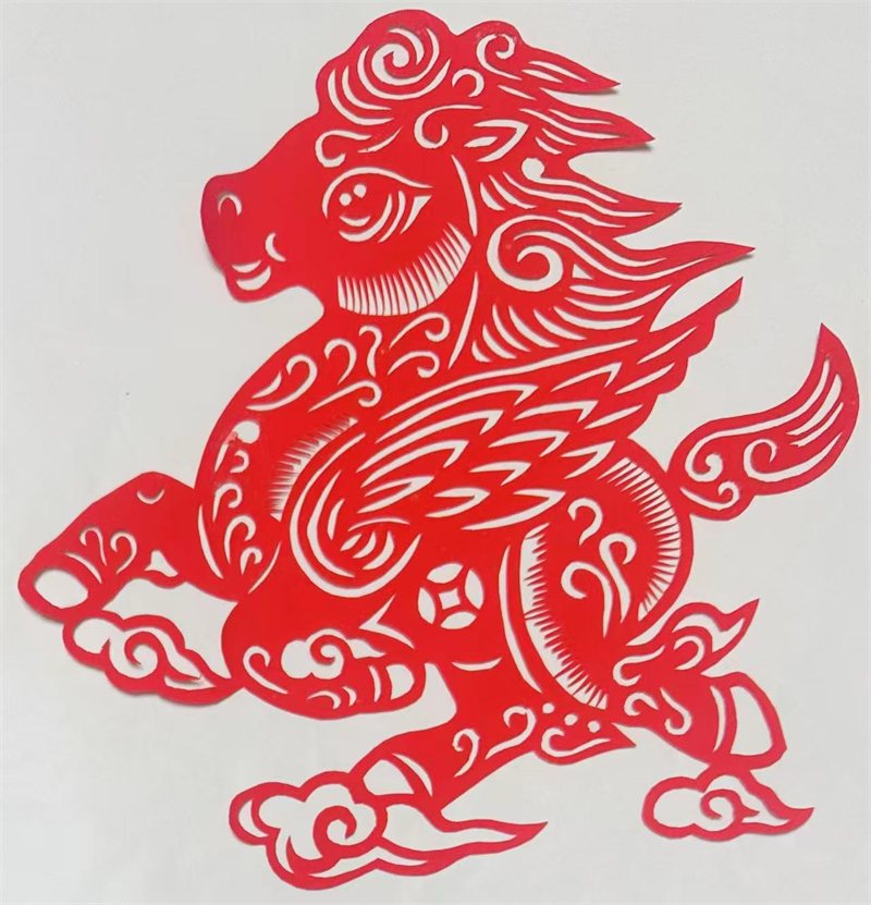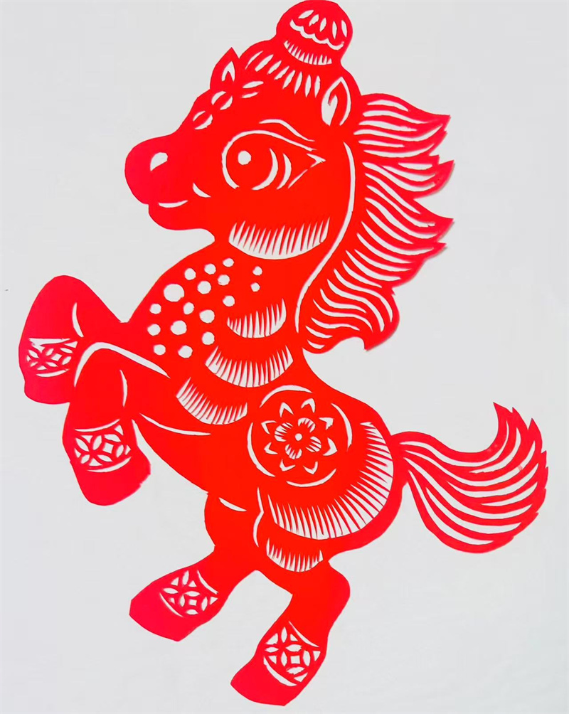 四马原型分别取自西周盠驹尊、汉代铜奔马、唐代三花马、普氏野马,涵盖文物经典与生态代表。史婷以剪纸语言重构这些经典,让千年马文化在纸面上“复活”。