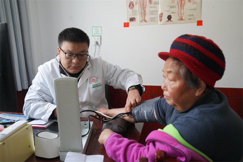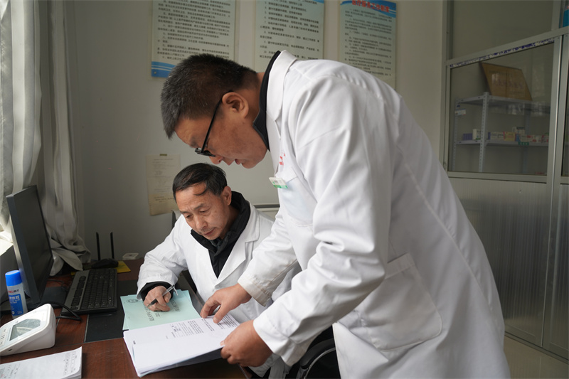 “今天感觉咋样?吃了什么药?降压药没停吧?”刚进门,李明明便急切询问。得知李登义因降压药吃完未及时购买而停药,他当即着急起来:“没药要给我打电话,千万不能停药!”随即为何淑琴测量血压,确认数值正常后才放下心来,详细记录健康档案,反复叮嘱保暖和按时用药。“山乡医生的战场,不止在诊室,更在田间地头、农家院落。”李明明深知宋坪乡独居老人多,上门服务是破解“就医难”的关键,无论严寒酷暑、白天黑夜,接到求助电话他总会第一时间出发。