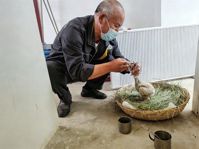 “一辈子看树,没想到快50岁了,还得从头学养鸟。”宋治平话语朴实,却透着坚定。项目启动前,他与同事专程赴陕西洋县,接受了4个月的系统培训,从饲料配比到疾病防治,从繁育技巧到行为观察,他像小学生一样认真记录每一个细节。“朱鹮金贵,一点都马虎不得。”这句朴素的话语,成为他三年来不变的工作准则与初心。