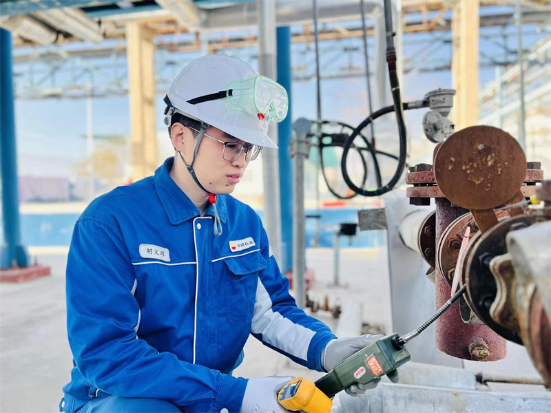 甘肃经济日报兰州讯(新甘肃·甘肃经济日报记者 陈功章 通讯员 尹宏斌 赵敏顺)2月24日,在兰州石化橡胶部丁腈一区域装置现场,聚合丁班班长崔金璐用酚酞试纸排查出一处调节阀阀芯处有轻微渗漏,经紧固后消除了隐患。
