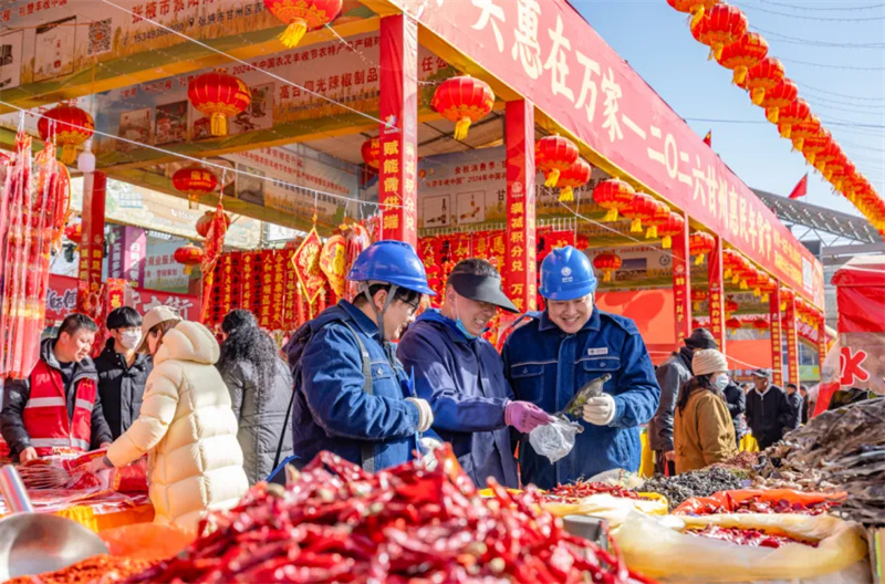 国网张掖供电公司组织员工在张掖市万家便民市场年货节期间开展优质服务活动,让广大市民在电力护航下安心置办年货。 程刚 摄
