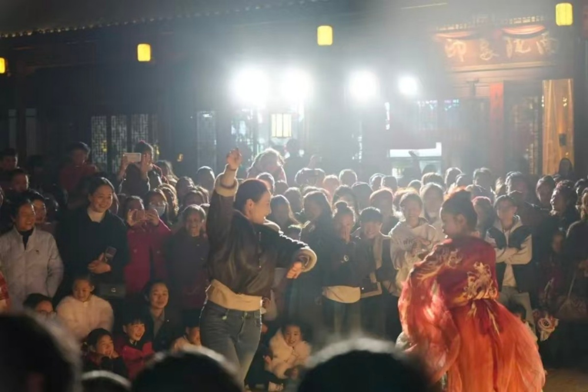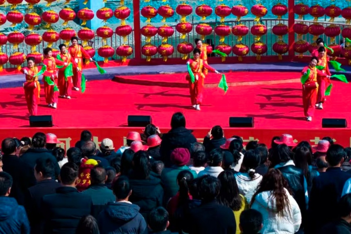 万象街作为“城市会客厅”,成为年味集聚的核心场域。锣鼓喧天、龙腾狮跃,社火队伍沿街巡游,红绸翻飞间尽显秦巴山区的豪迈热情;高山戏、秦腔、折子戏等非遗表演轮番登场,非遗代表性传承人走进街区实景演出,让观众沉浸式感受传统戏曲的独特魅力。滨江湿地公园、火车站、体育场等人口集聚区,白龙江边大合唱、广场舞、锅庄舞等活动接连上演,不同年龄、不同地域的游客齐聚一堂,共享这场文化盛宴。
