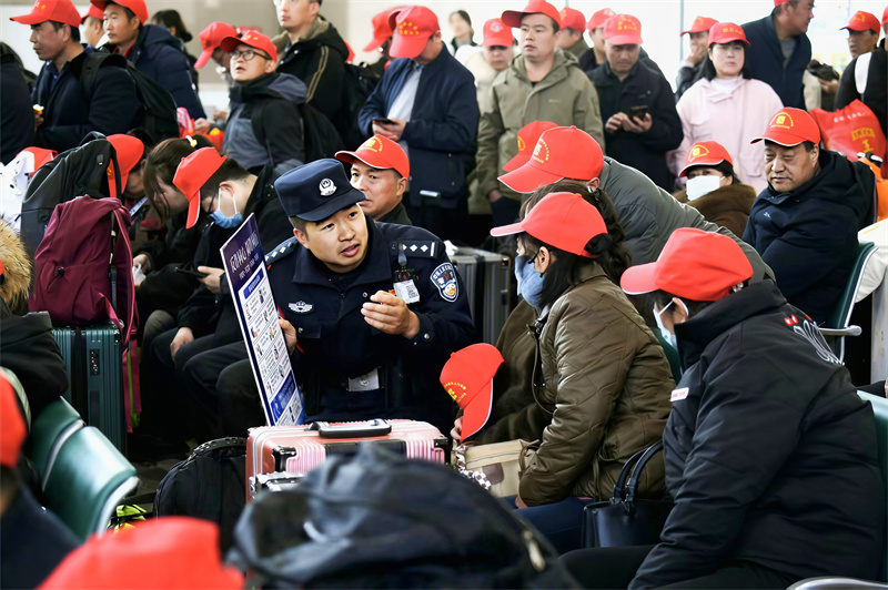 定西北站铁警以案说法讲解反诈要点,为务工人员守好“钱袋子”保驾护航 。