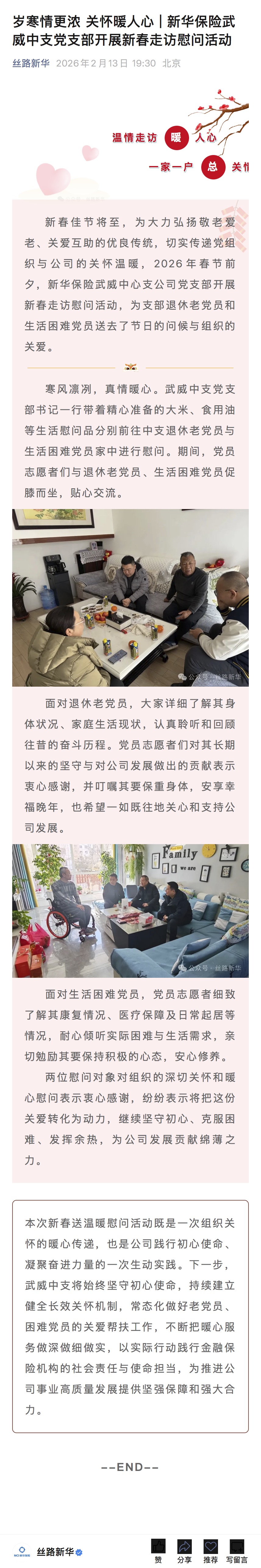 岁寒情更浓 关怀暖人心|新华保险武威中支党支部开展新春走访慰问活动