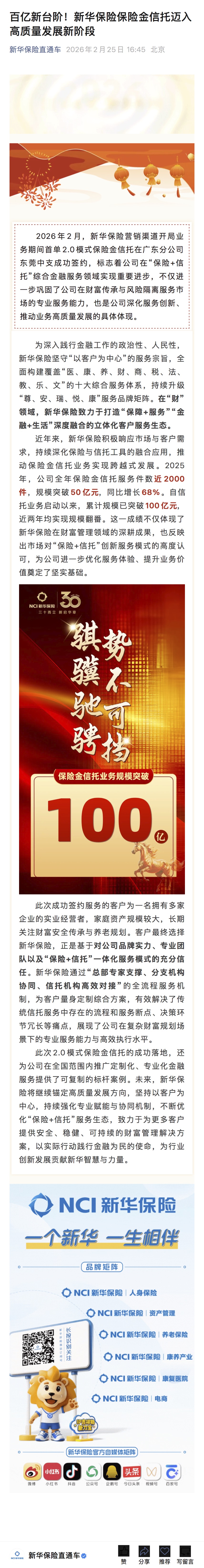 百亿新台阶!新华保险保险金信托迈入高质量发展新阶段