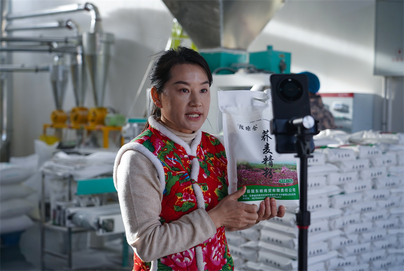 走进环县“三农”主播孙玲玲的杂粮加工车间,机器的轰鸣声与主播的推介声交织。“家人们,这劲道十足的荞麦面,都是咱环县红花老荞麦现磨现卖的,用来做羊肉臊子面,那叫一个香。”孙玲玲一边带网友“云逛厂”,展示荞麦面从原料到成品的全过程,一边实时回应网友的各类问询。“春节期间,我们的农特产品店照常营业,每天销售额都稳定在1万元以上。”