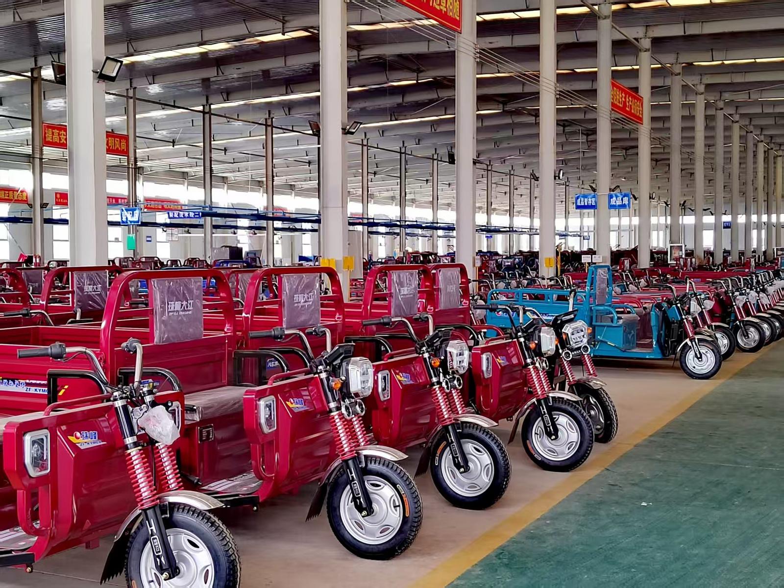 甘肃珠峰大江车辆制造有限公司整齐摆放的崭新电动车等待出售