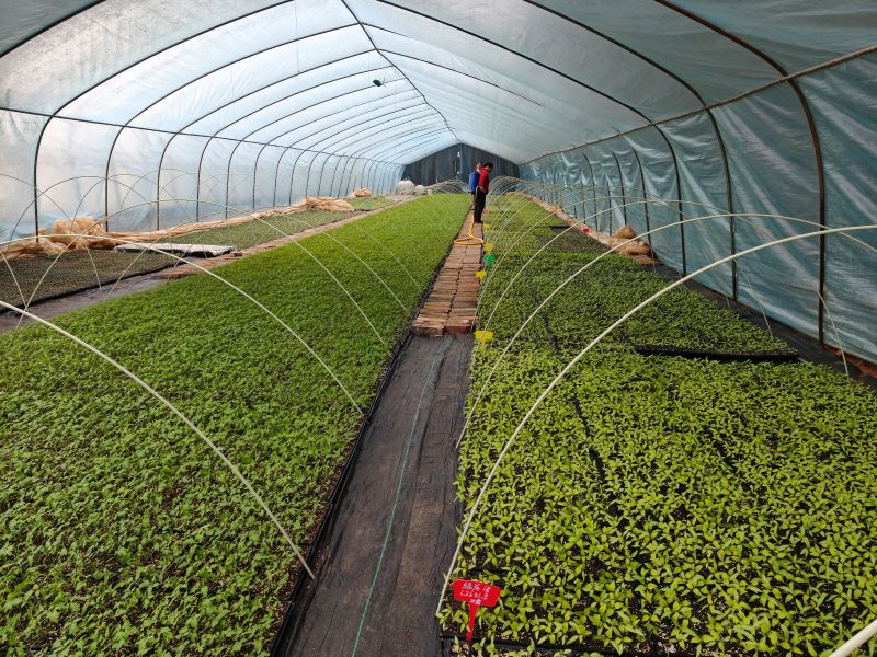 “温度、湿度、光照全部智能控制,水肥一体化精准滴灌,既节水省肥,又能保证蔬菜品质。这批无公害蔬菜再过一周就能上市,直接供应县城超市和学校食堂。”产业园负责人李建军一边巡查蔬菜长势一边介绍。不远处的育苗温室里,辣椒幼苗已长出两三片真叶,整齐排列在育苗盘中,工人们正忙着给幼苗拔草、浇水。栗川镇的野菊花育苗基地同样繁忙,年育壮苗500余万株,可保障7000余亩大田种植需求。烤烟育苗已完成超90%,县乡联动落实种植面积、强化技术培训、保障物资供应,实现了生产“开门红”。