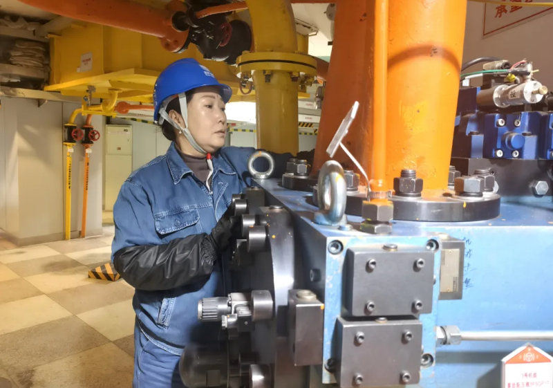国网甘肃刘家峡水电厂员工张李芳正在进行机组附属设备巡回工作。王鹏 摄