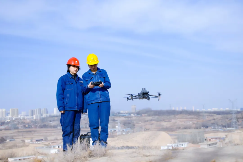 国网白银供电公司输电运检中心员工张晓燕、冯竞平运用无人机对输电线路进行巡视测温。查代辉 摄