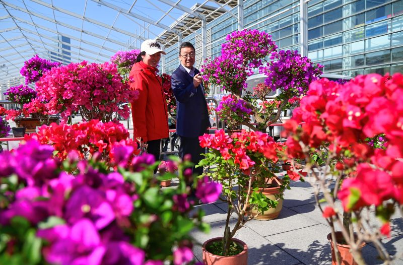 3月11日,2026年兰州春季花卉展在甘肃国际会展中心拉开帷幕,各式花卉争奇斗艳,吸引了众多市民前来赏花、购花。