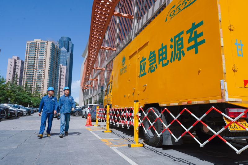 国网兰州供电公司员工在甘肃国际会展中心2025年兰洽会场馆外开展保电巡视。史双绚 摄
