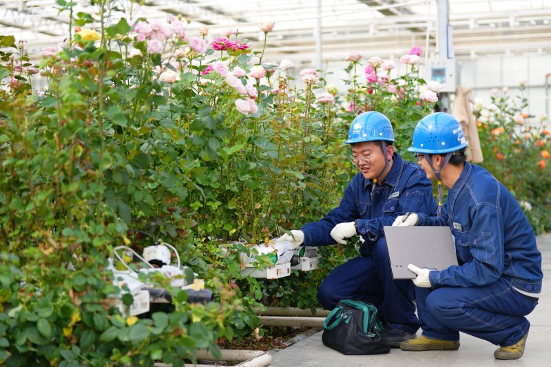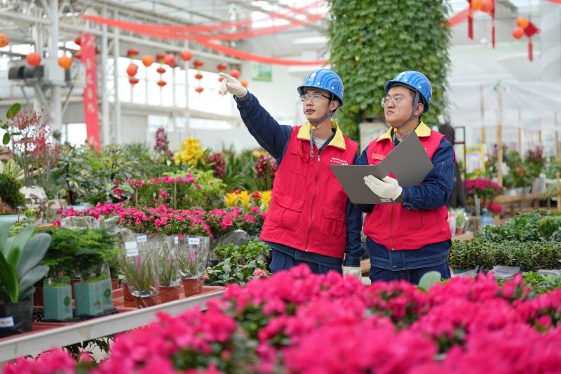 2月5日,正值花卉销售旺季,国网兰州供电公司新区公司市场班工作人员服务兰州新区农投集团花卉产业基地安全用电。李柳雅 摄