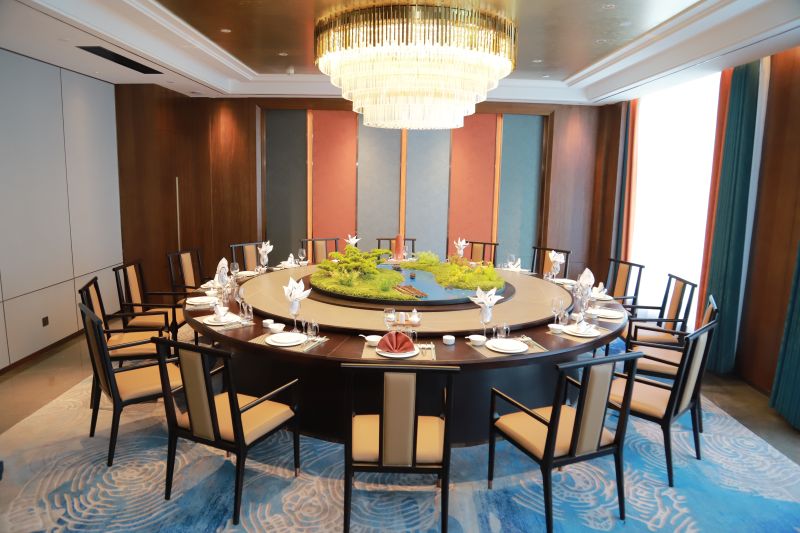 餐饮区域更是酒店的特色亮点,设有两个通透无柱式宴会厅及一个特色宴会厅,其中“万禧厅”面积达1000平方米,可灵活容纳50桌宴席或700人大型会议;多功能厅面积320平方米,可容纳20桌宴席或160人会议;特色宴会厅风格独特,适合中小型高端宴请及主题活动。