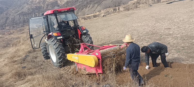 不远处的药田里,中药材采挖机隆隆作响,叉齿式采挖机往返穿梭,铁齿轻轻刨动泥土,带着湿土的党参苗整齐翻出,村民们紧随其后,有条不紊地捡拾、分拣、捆扎,堆起一座座浅黄的“种苗小山”。机械的轰鸣与村民的笑语交织在一起,彻底替代了往日繁重的人工劳作,奏响了农业机械化的奋进乐章。