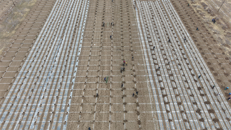 在抓好春季果园常规管理的同时,庄浪县以老果园改造为突破口,着力破解品种老化、树势衰弱等问题,推动苹果产业转型升级。赵墩乡庙龙沟区域,2800亩老果园改造现场热火朝天,果农分工协作,有的拉线定穴、规范打点,有的挥锹挖坑、培土施肥,有的扶苗定植、浇水保墒,每一道工序都标准规范、有条不紊。“我们精选了烟富6、烟富10、瑞阳、瑞雪、粉红秦冠5个市场认可度高的优质品种,从去年冬季就开始挖除老树、整理地块,目前首批1.5万株新苗已栽植到位,计划4月中旬全面完成种植任务。”赵墩乡副乡长孔天平介绍。