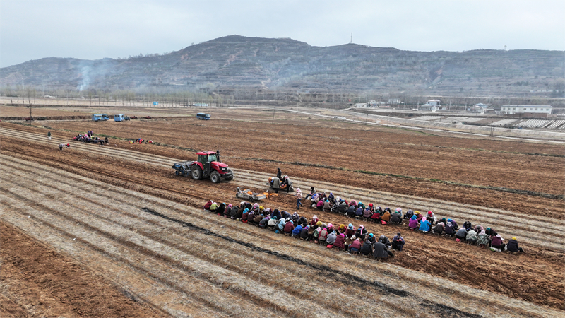 近日,庄浪县通化镇中药材育苗基地,农机手驾驶挖苗机穿梭在田间开挖党参苗,工人们紧随其后分组捡拾,机械轰鸣与劳作身影交织,奏响了春日“丰收曲”。 新甘肃·甘肃经济日报通讯员 张沛杰 杨璇 摄