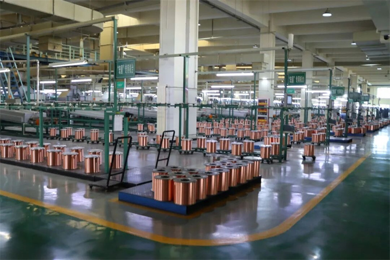 走进长通公司的展示大厅,线径0.012毫米至0.6毫米的电磁线产品整齐排列,纤细如发丝的线材缠绕在线盘上,在灯光下泛着细腻的金属光泽,直观展现着企业在超微细电磁线领域的极限制造实力。微细电磁线生产车间内,自动化生产线高效运转,一根根细如发丝的电磁线经放线、拉丝、涂漆、烘焙等工序,被精准缠绕在线盘上,尽显“智造”魅力。