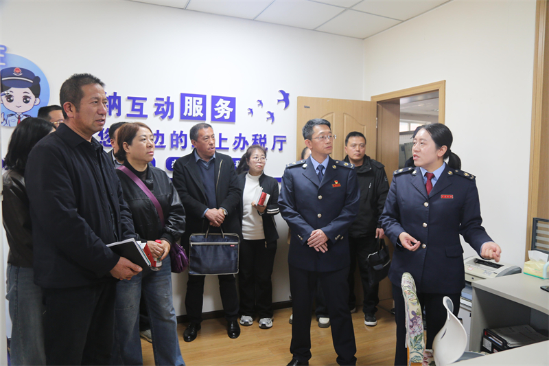 在纳税辅导室,通渭县税务局主要负责人以陪同办税的方式,与纳税人代表全程体验“大中台”支撑下的业务办理全流程,认真倾听纳税人办税感受,详细记录办税过程中的堵点、难点问题,现场协调解决实际诉求,以“沉浸式”服务推动办税流程再优化、服务质效再提升。