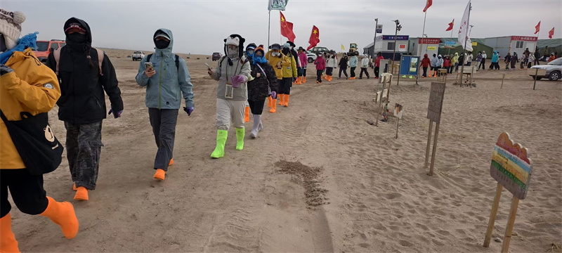 今年,借助公益活动热度,武威市和民勤县推动“生态+文旅”深度融合,7家市、县景区为志愿者提供免首道门票、观光车半价等优惠,精心打造6条精品文旅线路,在植树基地及核心景区开展文艺演出、实景剧展演等活动,让志愿者在植绿之余,沉浸式感受民勤的生态之美、人文之韵。