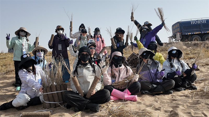 “我是从北京来的”“浙江杭州”“山东滨州”“四川成都”……一句句不同口音的自我介绍,在民勤的沙漠戈壁汇聚成最动人的和声。志愿者弯腰挥锹、俯身培土,指尖抚过梭梭的根须,将希望的幼苗稳稳植入沙壤,让荒芜的戈壁多了一抹灵动的新绿。