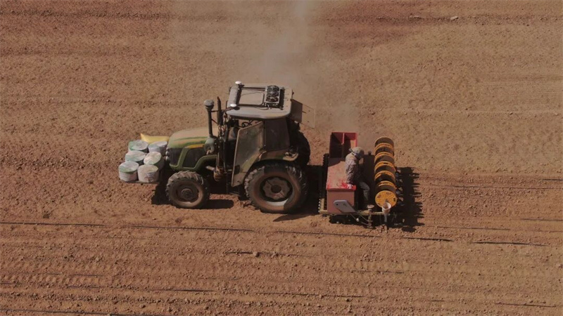 走进寺滩镇的旱砂地,大型播种机正有序行进,翻砂、播种、覆土一气呵成。农机手于国新手握方向盘,在田间往来穿梭:“我这一台机子,一天能播种六七十亩。一亩地下种8到10斤,要播匀、播到合适深度,苗才能齐整。”他笑着说,“我种了十几年地了,种地比较操心,农户也信得过,找我种地的人也多,我就给每个农户负责把田种好。”