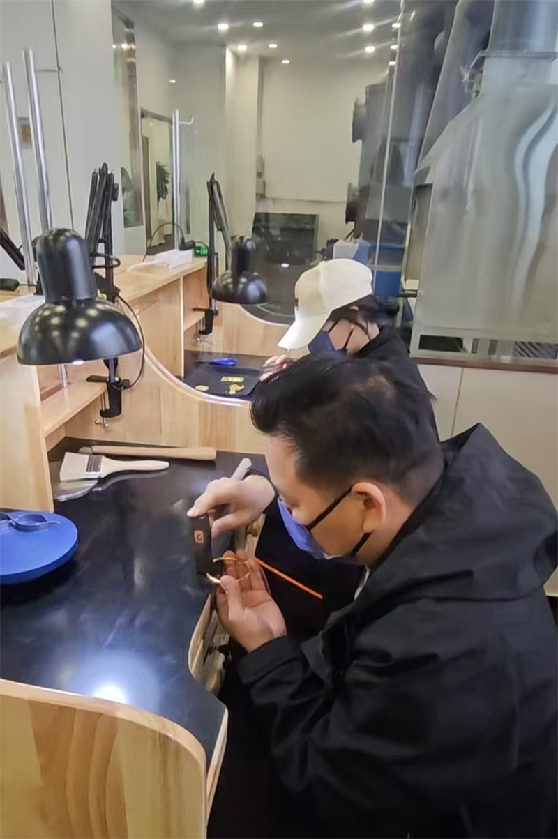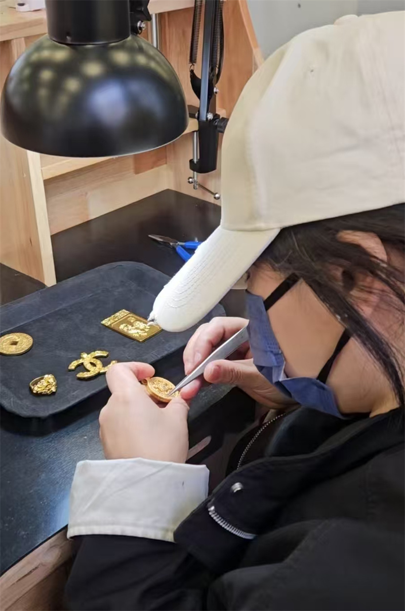 在崭新落成的珠宝文创加工车间内,工艺匠人精工细作,专注于贵金属饰品的精细化打磨雕琢。这里也将成为甘肃省博物馆馆藏文物IP与高端贵金属工艺深度融合的核心创作基地,助力文物文创产品实现从创意设计到成品生产的全链条落地。