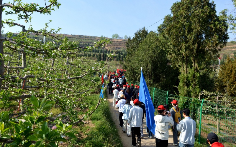 本次活动精心打造三大主题板块、八项特色活动,将健身、文旅、文化展演与乡村美景深度融合。田间地头,摄影爱好者们举着相机、手机,定格苹果花绽放的灵动瞬间;户外书画采风现场,文艺爱好者们沐着春风、伴着花香,挥毫泼墨描绘麦积秀美风光与发展新貌;秦腔唱腔铿锵有力、古韵悠长,古筝琴韵悠扬婉转,萦绕在花海之间,传统文化与田园风光碰撞出别样火花。文旅推介官热情宣讲,网红主播实时直播,全方位展现麦积区的生态之美、人文之韵。