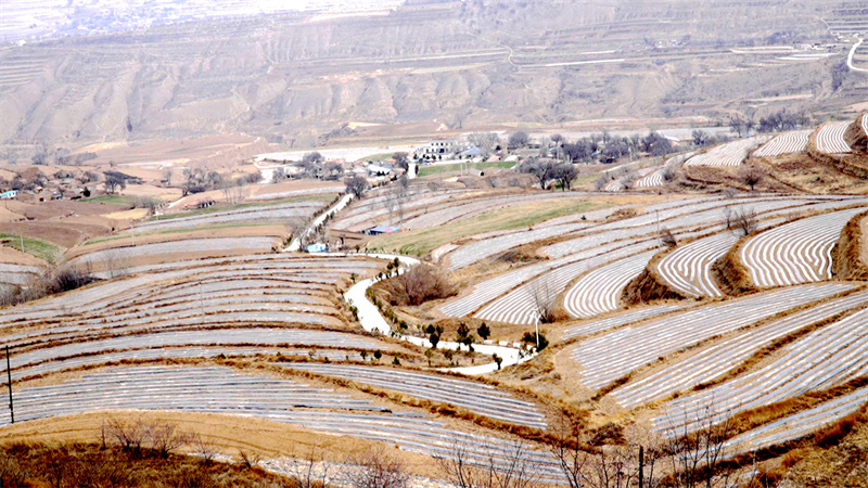 春和景明,陇原大地万物复苏。春播时节,在定西市安定区鲁家沟镇的万亩梯田上,旋耕机轰鸣穿梭,银白色的地膜如链条般铺满山峦。曾经“苦甲天下”的旱塬腹地,如今正上演着一场关于水与土的绿色奇迹。