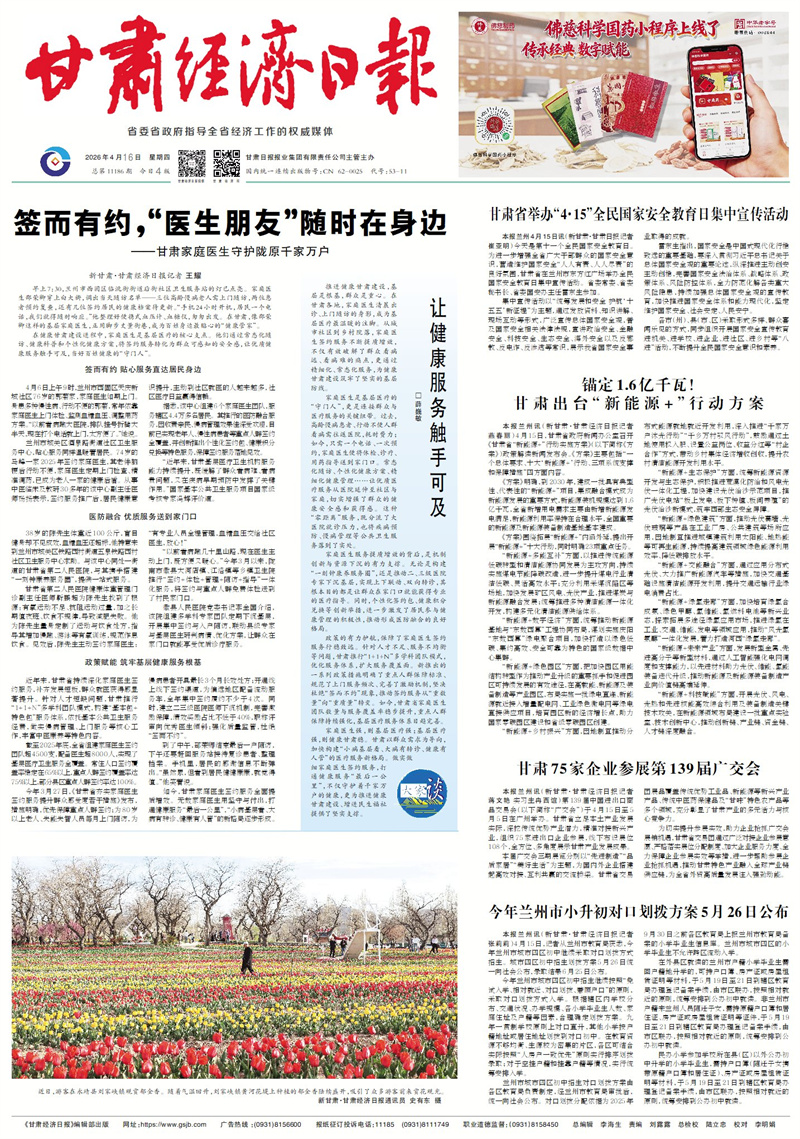 在健康甘肃建设进程中,家庭医生是基层医疗的核心支点。他们通过常态化随访、健康科普和个性化健康方案,将签约服务转化为群众可感知的安全感,让优质健康服务触手可及,当好百姓健康的“守门人”。