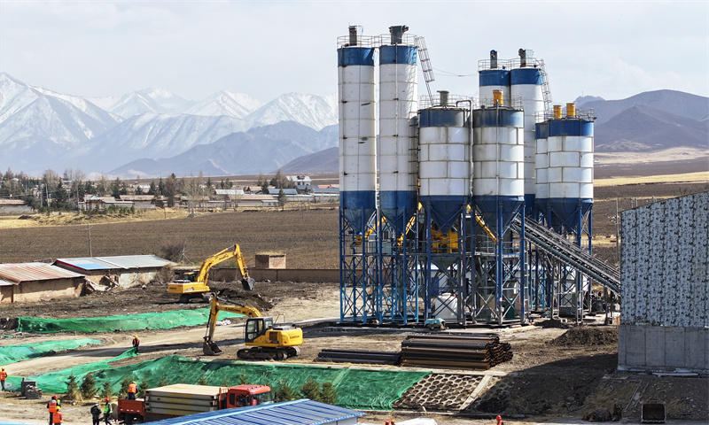 民乐县张扁高速混凝土拌合站项目建设现场,搅拌设备调试、场地平整等作业有序开展。新甘肃·甘肃经济日报通讯员 王晓泾 摄