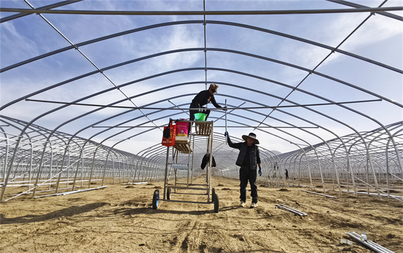 在民乐县南丰镇千亩有机蔬菜产业园项目建设现场,钢架搭建、管线铺设等工序有序推进,工人分工协作、干劲十足,全力加快智能温室搭建进度,力争早日实现投产见效。“我们每天加班加点赶工期,就是想尽快把智能温室建起来,早日投入蔬菜种植,带动周边乡亲在家门口就业。”正在搭建温室钢架的工人王建军擦着额头的汗水说。