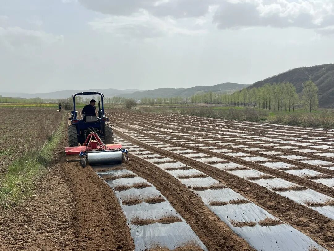 春和景明,农事正忙。近日,华亭市山寨乡甘河村的中药材种植基地里一派繁忙有序的春耕景象,在村民们的分工合作下,一张张银色的地膜在田间地头缓缓舒展,铺展出农户增收的新希望。
