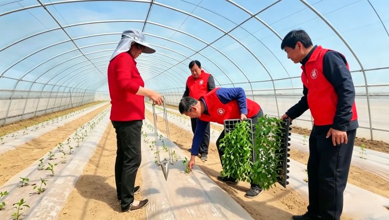 技术人员指导菜农栽植辣椒
