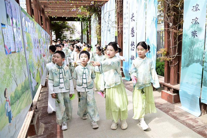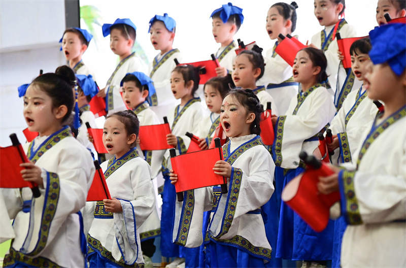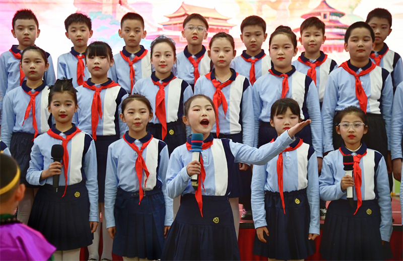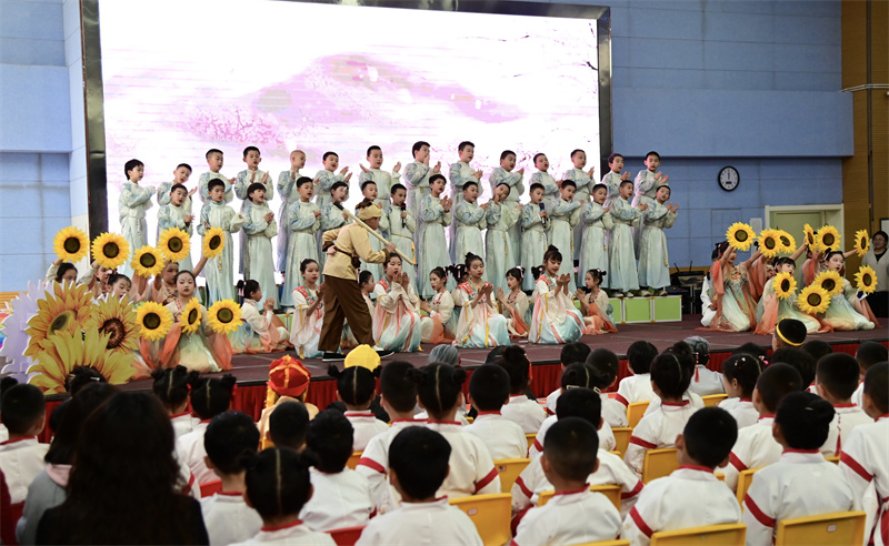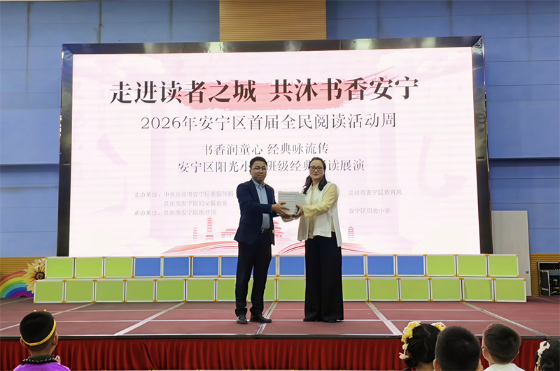 4月22日,在第31个“世界读书日”到来之际,兰州市安宁区阳光小学举办“书香润童心 经典咏流传”经典诵读展演。活动作为2026年安宁区全民阅读活动周的重要组成部分,600余名学子依次登台诵读经典,传承文化底蕴。新甘肃·甘肃经济日报记者 瞿娟 摄
