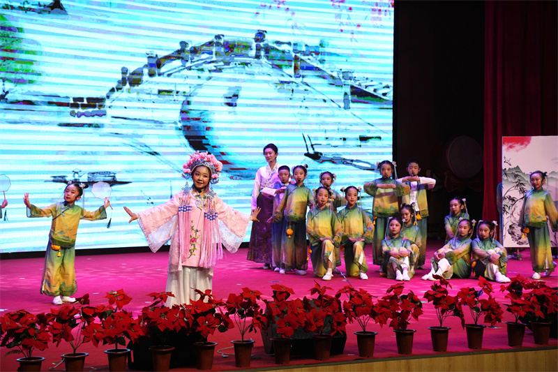 活动现场墨韵飘香、书声琅琅,古韵与新风交相辉映。《承千年文脉 诵古今英豪》气势磅礴,尽显中华文脉风骨;《诗韵四季?书香润心》诗意灵动,尽展四季书香之美;《精报忠国》道尽家国情怀与英雄气节……师生们以诗词吟诵、情景演绎等形式,将课本知识、历史故事、传统文化、航天精神融入表演,以声传情、以演铸魂,赢得现场阵阵掌声。